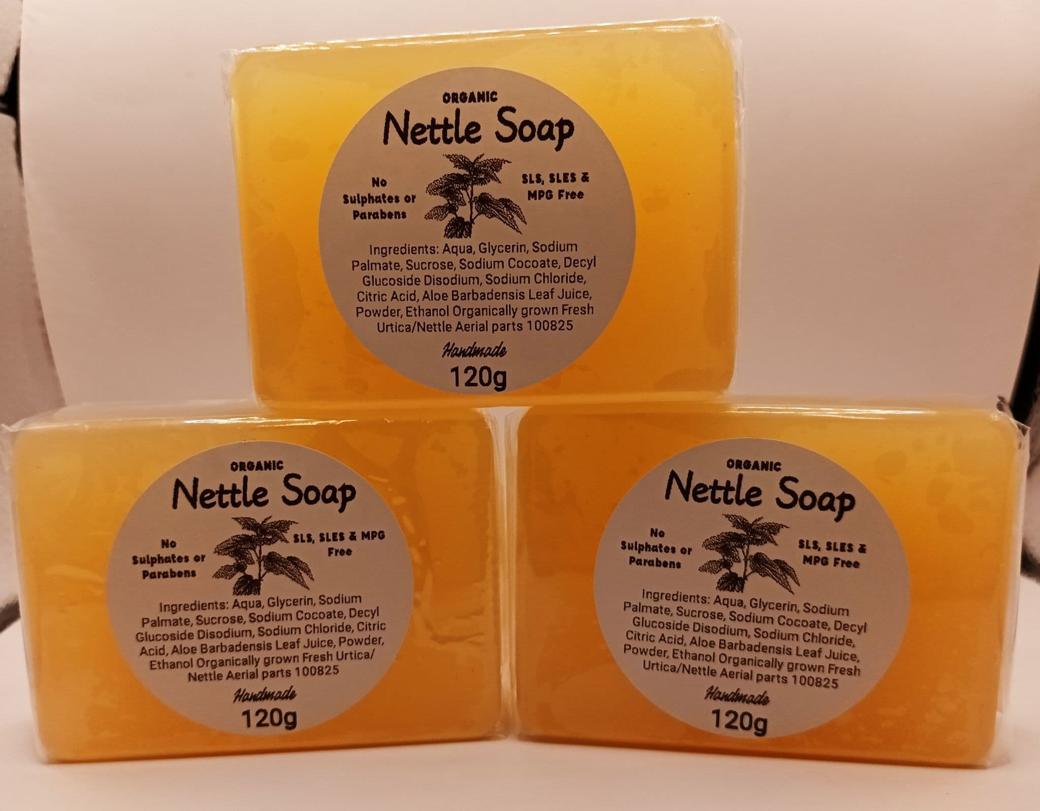 Handmade Organic Nettle Soap 120gx3=360g (Improved Formula)